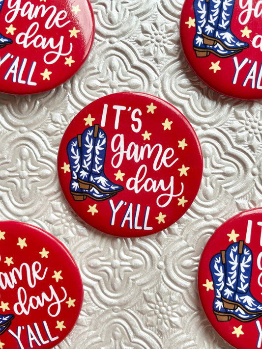 It's Gameday Y'all Red and Blue KU Pinback Button